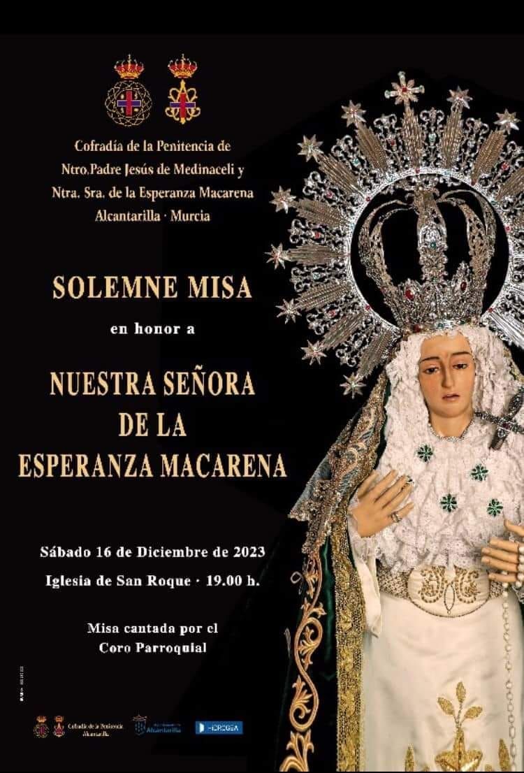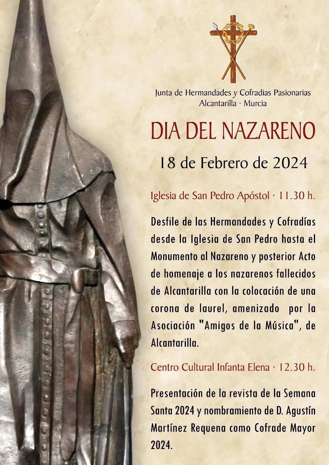 30/10/23 . Este próximo sábado, tras la Santa Misa en sufragio por los nazarenos y cofrades fallecidos de Alcantarilla, se procederá a la presentación del cartel de Semana Santa 2024 en la iglesia de San Pedro Apóstol de nuestra ciudad. Os esperamos.